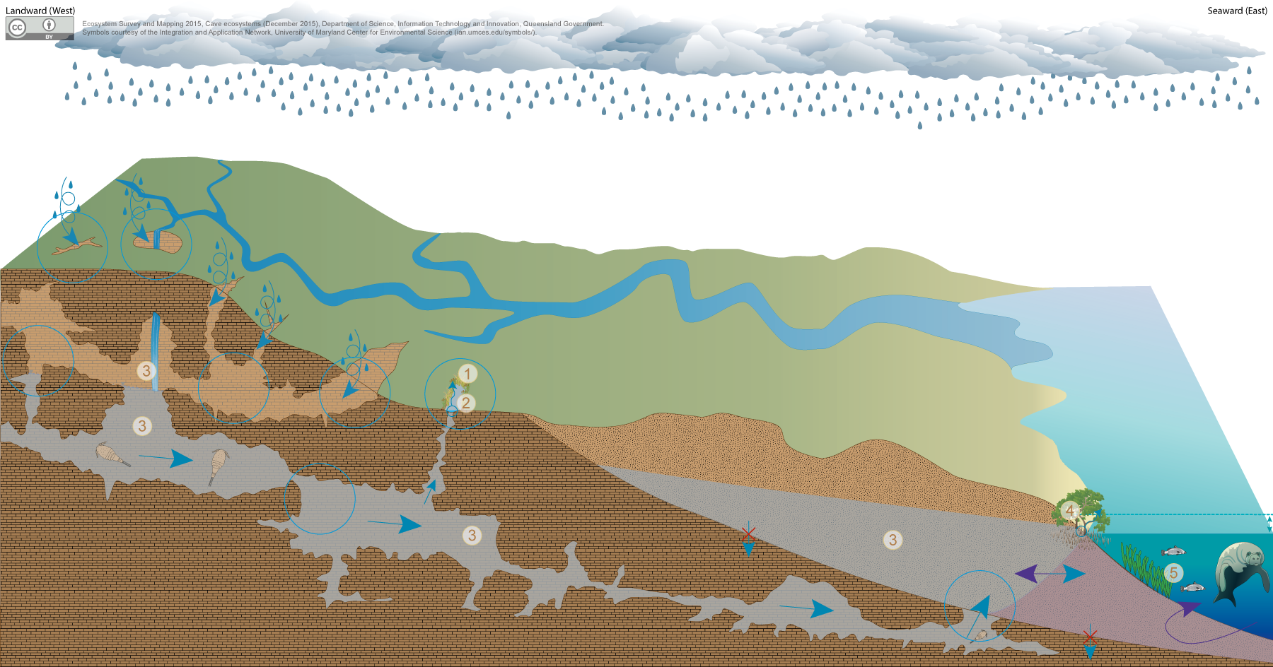 Pictorial conceptual model PDF Additional linksLast updated: 18 December 2015 This page should be cited as: Queensland Government, Queensland (2015) Cave ecosystems, WetlandInfo website, accessed 15 December 2025. Available at: https://wetlandinfo.detsi.qld.gov.au/wetlands/ecology/aquatic-ecosystems-natural/aquifers-caves/caves/ |