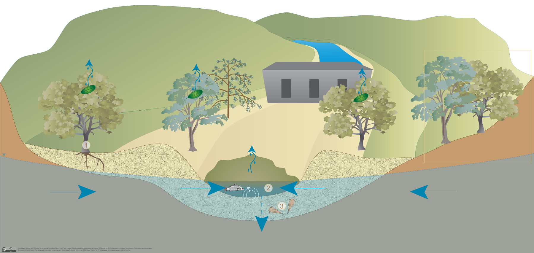 Last updated: 18 December 2015 This page should be cited as: Queensland Government, Queensland (2015) Alluvia—modified (dams), WetlandInfo website, accessed 15 December 2025. Available at: https://wetlandinfo.detsi.qld.gov.au/wetlands/ecology/aquatic-ecosystems-natural/groundwater-dependent/alluvia-dams-limited/ |