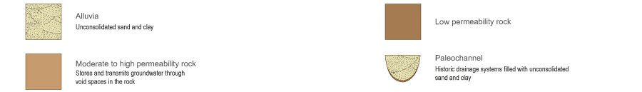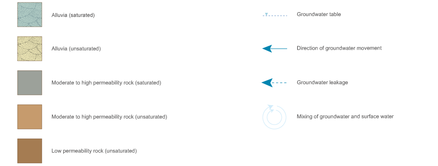 - Recharge from surrounding fractured hard rock or porous sedimentary rock may assist in maintaining groundwater levels in the alluvia and supporting specialised aquatic fauna, stygofauna, which are groundwater dependent (see bottom box).