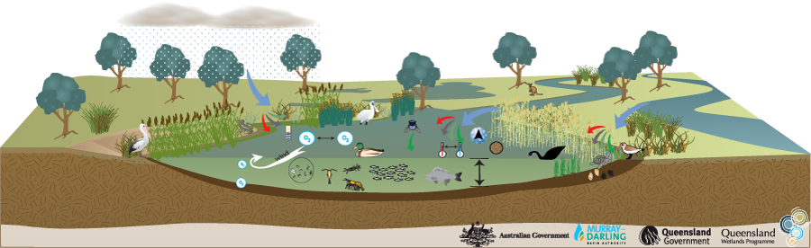 Arid and semi-arid floodplain lakeArid and semi-arid floodplain lake![]() Click on elements of the model or select from the tabs below Last updated: 22 March 2013 This page should be cited as: Department of the Environment, Tourism, Science and Innovation, Queensland (2013) Arid and semi-arid floodplain lake, WetlandInfo website, accessed 15 December 2025. Available at: https://wetlandinfo.detsi.qld.gov.au/wetlands/ecology/aquatic-ecosystems-natural/lacustrine/arid-floodplain-lake/ |