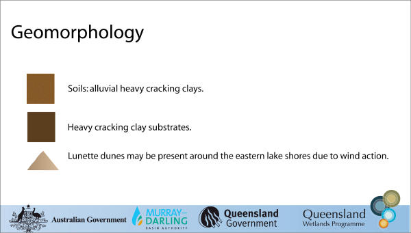 Last updated: 22 March 2013 This page should be cited as: Department of the Environment, Tourism, Science and Innovation, Queensland (2013) Arid and semi-arid floodplain lake – Geomorphology, WetlandInfo website, accessed 15 December 2025. Available at: https://wetlandinfo.detsi.qld.gov.au/wetlands/ecology/aquatic-ecosystems-natural/lacustrine/arid-floodplain-lake/geomorphology.html |