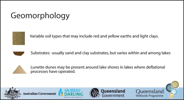 Last updated: 22 March 2013 This page should be cited as: Department of the Environment, Tourism, Science and Innovation, Queensland (2013) Arid and semi-arid non-floodplain lake – Geomorphology, WetlandInfo website, accessed 15 December 2025. Available at: https://wetlandinfo.detsi.qld.gov.au/wetlands/ecology/aquatic-ecosystems-natural/lacustrine/arid-non-floodplain-lake/geomorphology.html |