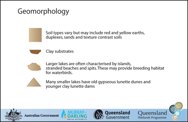Last updated: 22 March 2013 This page should be cited as: Department of the Environment, Tourism, Science and Innovation, Queensland (2013) Arid and semi-arid saline lake – Geomorphology, WetlandInfo website, accessed 15 December 2025. Available at: https://wetlandinfo.detsi.qld.gov.au/wetlands/ecology/aquatic-ecosystems-natural/lacustrine/arid-saline-lake/geomorphology.html |