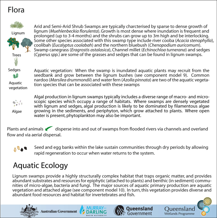 Arid and semi-arid lignum swampArid and semi-arid lignum swamp – Flora![]() Click on elements of the model or select from the tabs below