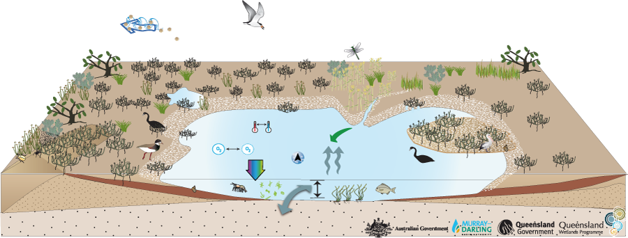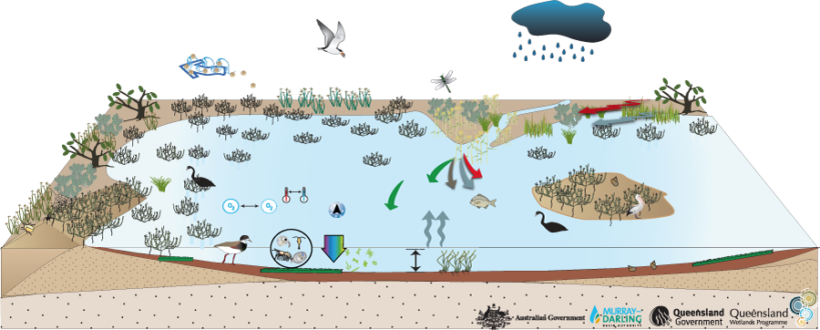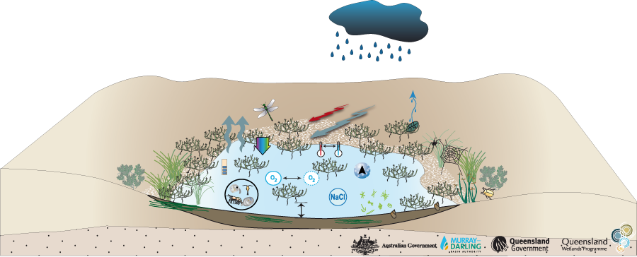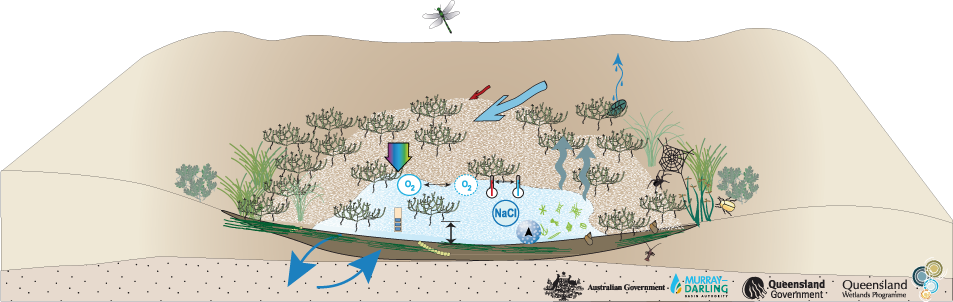 Arid and semi-arid saline swampArid and semi-arid saline swampClick on elements of the model or select from the tabs below Last updated: 22 March 2013 This page should be cited as: Department of the Environment, Tourism, Science and Innovation, Queensland (2013) Arid and semi-arid saline swamp, WetlandInfo website, accessed 15 December 2025. Available at: https://wetlandinfo.detsi.qld.gov.au/wetlands/ecology/aquatic-ecosystems-natural/palustrine/arid-saline-swamp/ |