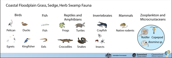 Coastal and subcoastal floodplain grass, sedge, herb swampCoastal and subcoastal floodplain grass, sedge, herb swamp – FaunaClick on elements of the model or select from the tabs below Birds