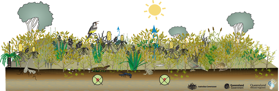 Coastal and subcoastal floodplain wet heath swampCoastal and subcoastal floodplain wet heath swampClick on elements of the model or select from the tabs below Last updated: 22 March 2013 This page should be cited as: Department of the Environment, Tourism, Science and Innovation, Queensland (2013) Coastal and subcoastal floodplain wet heath swamp, WetlandInfo website, accessed 15 December 2025. Available at: https://wetlandinfo.detsi.qld.gov.au/wetlands/ecology/aquatic-ecosystems-natural/palustrine/floodplain-heath/ |