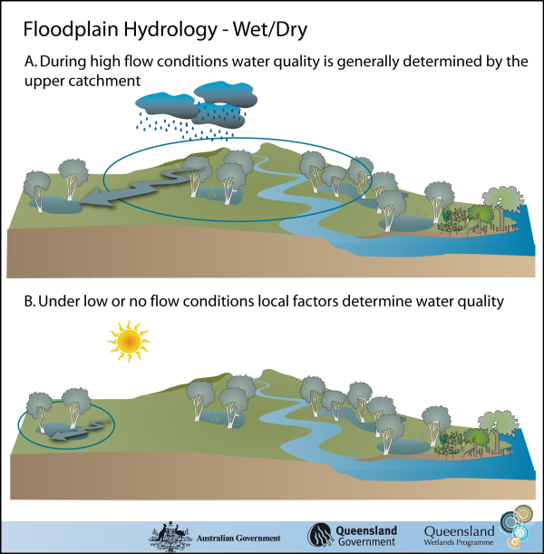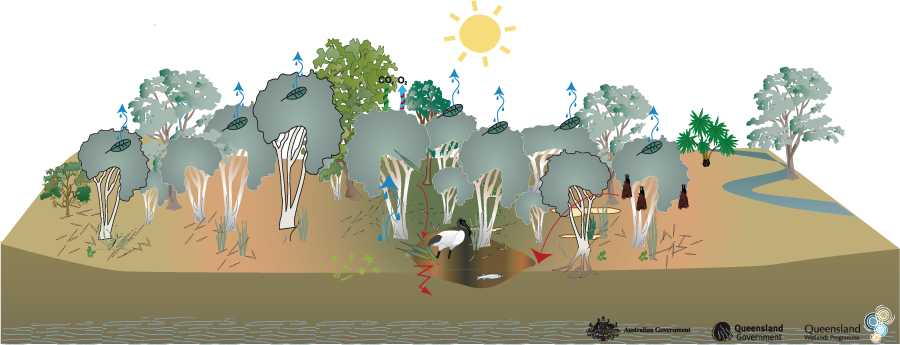 Coastal and subcoastal floodplain tree swamp–Melaleuca spp. and Eucalyptus spp.Coastal and subcoastal floodplain tree swamp–Melaleuca spp. and Eucalyptus spp.Click on elements of the model or select from the tabs below Last updated: 22 March 2013 This page should be cited as: Department of the Environment, Tourism, Science and Innovation, Queensland (2013) Coastal and subcoastal floodplain tree swamp–Melaleuca spp. and Eucalyptus spp., WetlandInfo website, accessed 15 December 2025. Available at: https://wetlandinfo.detsi.qld.gov.au/wetlands/ecology/aquatic-ecosystems-natural/palustrine/floodplain-tree-swamp/ |