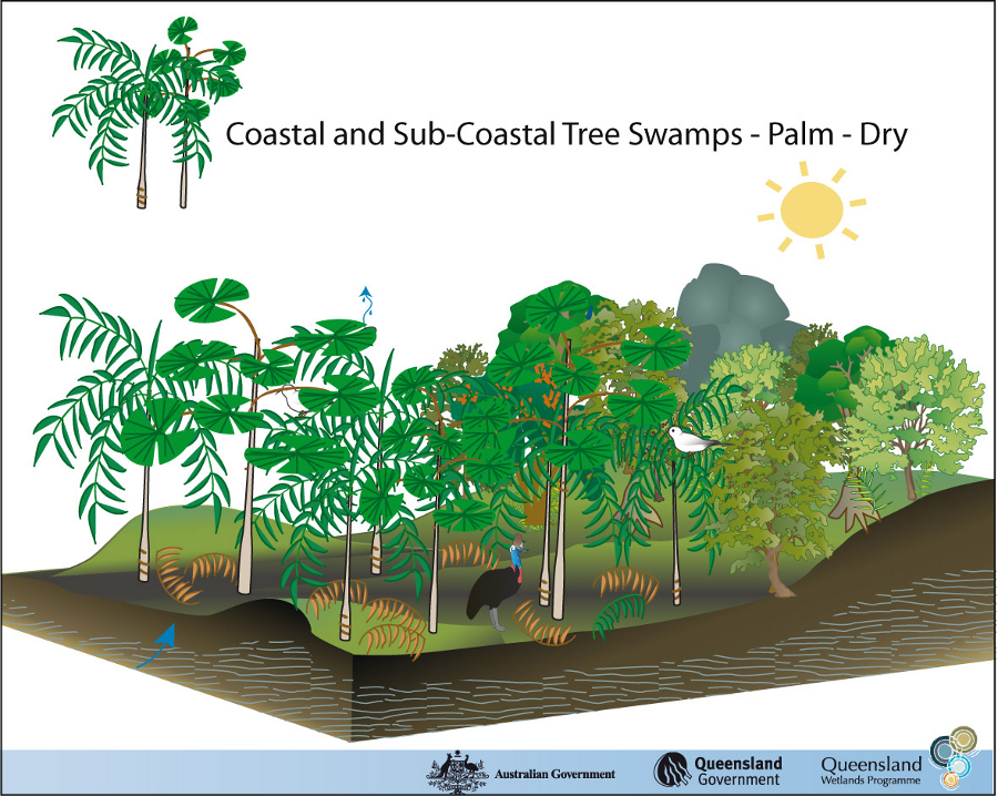 Coastal and subcoastal tree swamp—PalmCoastal and subcoastal tree swamp—PalmClick on elements of the model or select from the tabs below Last updated: 22 March 2013 This page should be cited as: Department of the Environment, Tourism, Science and Innovation, Queensland (2013) Coastal and subcoastal tree swamp—Palm, WetlandInfo website, accessed 15 December 2025. Available at: https://wetlandinfo.detsi.qld.gov.au/wetlands/ecology/aquatic-ecosystems-natural/palustrine/palm-swamp/ |