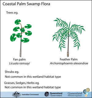 Department of the Environment, Tourism, Science and Innovation, Queensland (2013) Coastal and subcoastal tree swamp—Palm – Flora, WetlandInfo website, accessed 15 December 2025. Available at: https://wetlandinfo.detsi.qld.gov.au/wetlands/ecology/aquatic-ecosystems-natural/palustrine/palm-swamp/flora.html