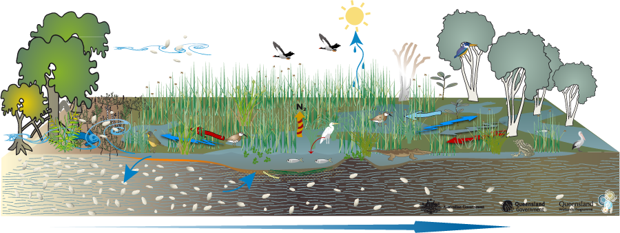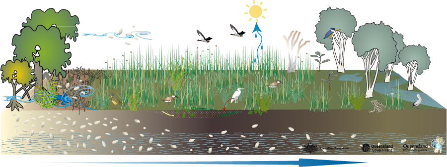 Coastal and subcoastal saline swampCoastal and subcoastal saline swampClick on elements of the model or select from the tabs below Last updated: 22 March 2013 This page should be cited as: Department of the Environment, Tourism, Science and Innovation, Queensland (2013) Coastal and subcoastal saline swamp, WetlandInfo website, accessed 15 December 2025. Available at: https://wetlandinfo.detsi.qld.gov.au/wetlands/ecology/aquatic-ecosystems-natural/palustrine/saline-swamp/ |