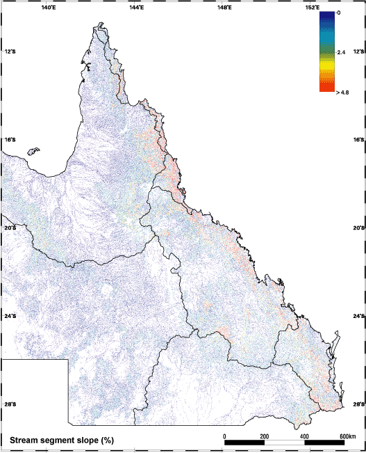 Last updated: 22 March 2013 This page should be cited as: Department of the Environment, Tourism, Science and Innovation, Queensland (2013) Stream Segment Slope, WetlandInfo website, accessed 15 December 2025. Available at: https://wetlandinfo.detsi.qld.gov.au/wetlands/ecology/aquatic-ecosystems-natural/riverine/freshwater-biogeo/background/qld-stream-segment-slope.html |