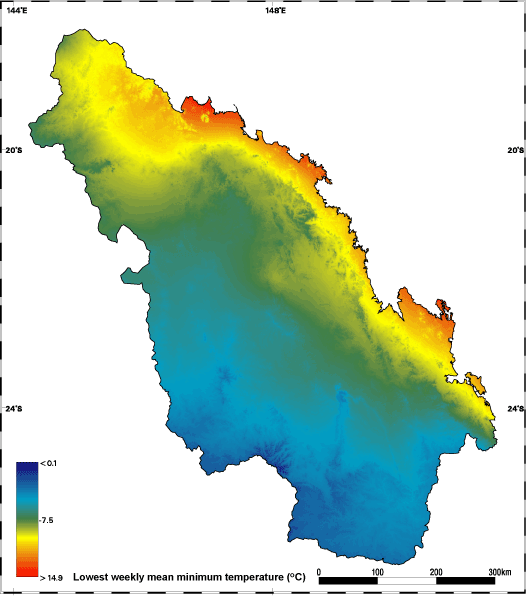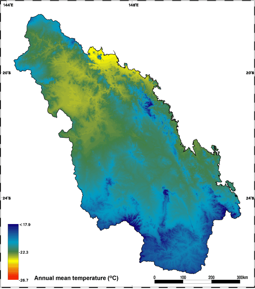 Last updated: 22 March 2013 This page should be cited as: Department of the Environment, Tourism, Science and Innovation, Queensland (2013) Central Freshwater Biogeographic Province – Temperature maps, WetlandInfo website, accessed 15 December 2025. Available at: https://wetlandinfo.detsi.qld.gov.au/wetlands/ecology/aquatic-ecosystems-natural/riverine/freshwater-biogeo/central/climate/temperature-maps.html |
