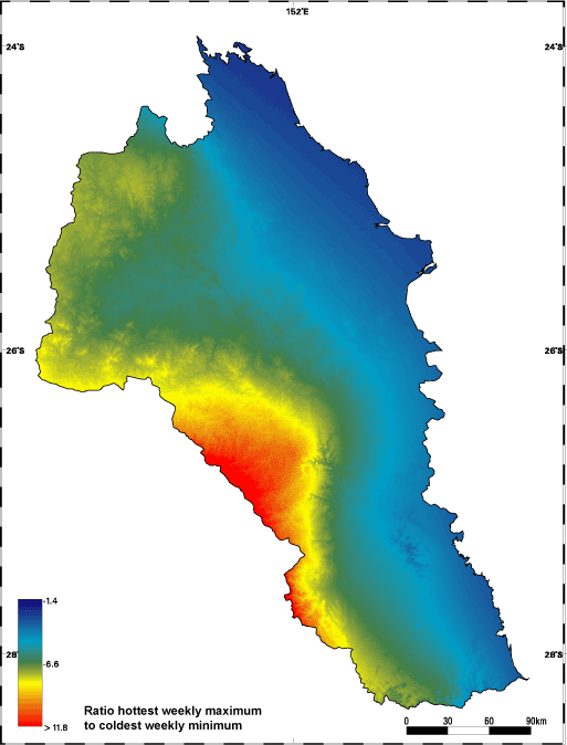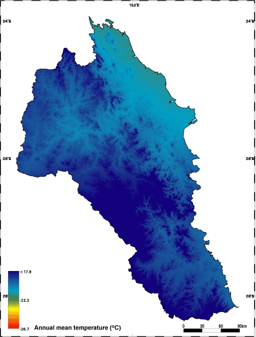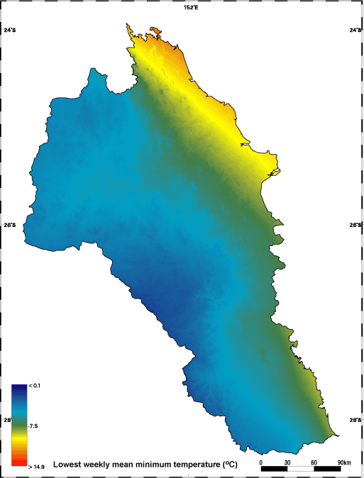 Last updated: 22 March 2013 This page should be cited as: Department of the Environment, Tourism, Science and Innovation, Queensland (2013) South-East Freshwater Biogeographic Province – Temperature maps, WetlandInfo website, accessed 15 December 2025. Available at: https://wetlandinfo.detsi.qld.gov.au/wetlands/ecology/aquatic-ecosystems-natural/riverine/freshwater-biogeo/south-east/climate/temperature-maps.html |