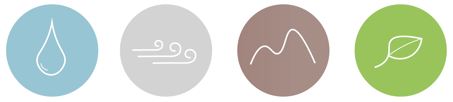 The hydrosphere contains all the water on Earth, which covers about 71% of the Earth’s surface. Water is essential to all life, and is a major component of weather patterns, and can impact many cycles and processes. The hydrosphere contains the water cycle, where water is in constant motion and change (including water evaporating from the oceans, moving through the atmosphere and percolating through the substrate via groundwater). Water movement creates hydrodynamic energy that is involved in processes, does work, and is involved in chemical processes. For example, water also modifies the Earth’s surface through processes such as erosion that weathers rock material and is involved in soil-forming processes[1]. The atmosphere is the dynamic envelope of gases on the Earth’s surface that is constantly interacting with the Earth’s components. The atmosphere is made of gases (78% nitrogen, 21% oxygen and smaller amounts of other gases, such as carbon dioxide), and water vapour. The atmosphere is essential to many life processes, such as photosynthesis, where plants extract carbon dioxide from the atmosphere and expel oxygen[1]. The geosphere includes the continental and oceanic crust and all other layers of the Earth's interior. This includes all rocks, sediments and soils, surface landforms and the processes that shape the Earth's surface. The biosphere includes all life on Earth. The biosphere also consists of life living on or in the Earth's geosphere and hydrosphere, including humans and all organic matter that has not yet decomposed[1]. The biosphere may be discontinuous and irregular, yet it interacts with, and is connected to, all other spheres within which it is intricately interwoven. Life exists within specific environmental settings which are a result of the mix of components on processes that form habitats.