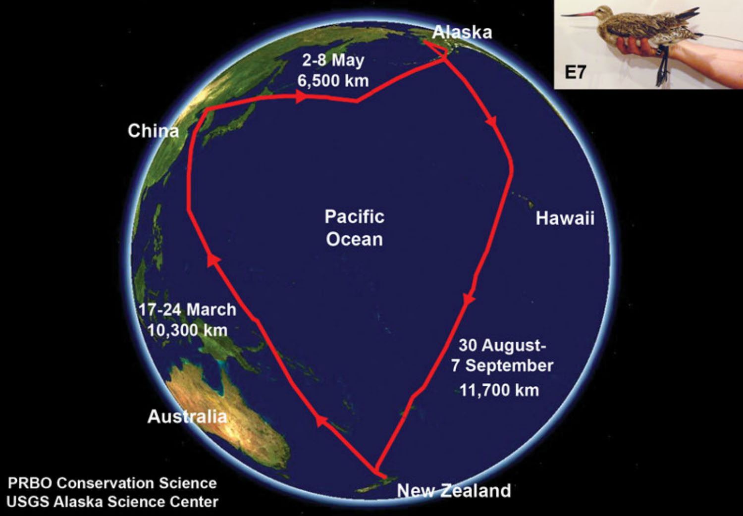 East Asian—Australasian FlywayAcross the world there are several identifiable 'flyways' for species that have similar breeding or non-breeding ranges and migration patterns. Australia is one of 22 countries within the East Asian—Australasian Flyway and migratory waterbirds reach it via one or more of these countries, e.g. from breeding grounds in Russia or New Zealand. Shorebird migration is among the most extraordinary feats of travel in the animal kingdom. Each species has its own breeding and non-breeding distribution and habitat preferences. Each has its own migration strategies, flight routes and stopover sites. Australia is the southern destination for shorebirds using the East Asian—Australasian Flyway and a significant proportion of birds arriving here either stay in Queensland, transit through Queensland to New South Wales, Victoria or Tasmania, or travel through to New Zealand. Migration along the East Asian—Australasian FlywayMigratory shorebirds of the East Asian—Australasian Flyway breed in parts of northeast Asia (eastern Siberia and China), to as far west as the Taymyr Peninsula in the far north of Russia and as far east as Alaska (e.g. some bar-tailed godwits). Most of these birds migrate southward before the onset of winter, with the destination for many being the warmer feeding habitats of Australia. After spending the summer in the south, the first leg of the northward migration from Australia for waterbirds can be a very long flight of more than 6,000 km to reach a staging site in the flyway, such as the mudflats around the Yellow Sea in China and Korea. The Yellow Sea region of the flyway is especially important as birds need to spend time here feeding to regain weight lost in consuming body fat that powered the first leg of their journey north from Australia, and to prepare for arrival at their breeding grounds. Birds of most species travel 20,000 km to the northern hemisphere and back to Australia each year. The epic journeys of bar-tailed godwits across the Pacific Ocean to the east coast of Australia and New Zealand from Alaska include nonstop flights of up to 13,000 km. Shorebirds that occur in large numbers in Australia originate from the following areas: