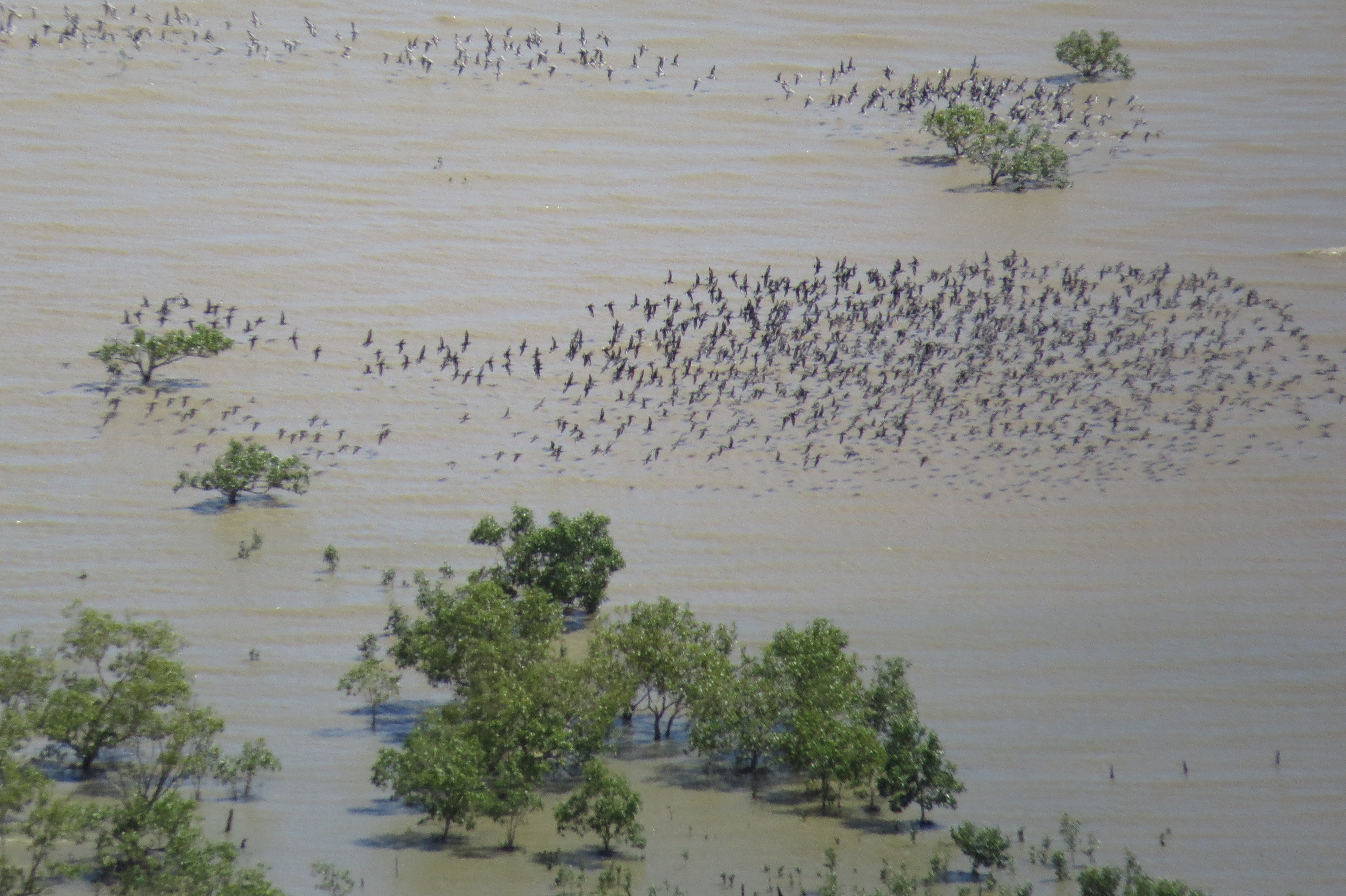 Shorebirds in the south east Gulf of Carpentaria roost on beach ridges, muddy shores, or behind mangroves on partially flooded claypans. There are many roost sites available where the height of the tide, as well as prevailing winds, determines which roost sites will be used at any one time. High numbers of shorebirds can occur between the Nassau River and west of Tarrant Point. Shorebird density is highest within 30 km to the north of Karumba. Parts of the coastline in this region, are used more intensively in some seasons than in others. For example, the coastline to the west of Gore Point near Burketown has a high density of great knot and red knot during the period of southward migration. To the east of Gore Point, the densities of black-tailed godwit, common greenshank and sharp-tailed sandpiper are at a peak later in the year, prior to the wet season. The coastal shorebird community is composed of mostly migratory species. In winter, only about 10% of birds are resident shorebirds, consisting mostly of Australian pied oystercatcher, black-winged stilt and red-capped plover. The masked lapwing, black-winged stilt and red-necked avocet also have significant sub-coastal populations. The region is important for shorebirds not making the northward migration e.g. young birds or non-breeding adults that either stay in the area, or arrive from farther south. Winter numbers of all shorebirds is as much as 30% of the numbers in the summer. The great knot and red knot contributes over half the total number of shorebirds for the region. Greenshank, marsh sandpiper and sharp-tailed sandpiper are common. These species also use sub-coastal habitats after the beginning of highly seasonal rainfall in the region. Red-necked stint are common over winter months and during the latter half of the year prior to the wet season when they move to southern and eastern parts of Australia. In April, additional red knots arrive from New Zealand as they migrate north. The importance of the south east Gulf of Carpentaria for shorebirds was highlighted by the addition of two sites to the international East Asian—Australasian Flyway Partnership Site Network. Additional informationIndigenous rangers in the Gulf of Carpentaria monitor shorebirds in the region. AcknowledgementsThis information has been compiled by the Queensland Wader Study Group with input from the Queensland Parks and Wildlife Service, researchers and volunteers (from Australasian Wader Study Group, Birds Queensland, the Port Curtis Wader Study Group, the Wildlife Preservation Society of Queensland, Birds Australia and the Mackay Conservation Group). These pages are primarily sourced from the report prepared by the Queensland Ornithological Society Inc for the Queensland Department of Environment and Heritage Protection and the Australian Heritage Committee, Driscoll, P. V. 1995. Survey of wader and waterbird communities along the central Queensland coast. Please note the information above is based on the best available at the time of publication. Last updated: 2 February 2021 This page should be cited as: Department of the Environment, Tourism, Science and Innovation, Queensland (2021) Shorebirds South East Gulf of Carpentaria, WetlandInfo website, accessed 15 December 2025. Available at: https://wetlandinfo.detsi.qld.gov.au/wetlands/ecology/components/biota/fauna/fauna-taxon/birds/shore-bird/migratory-qld/south-east-gulf-carpentaria.html |