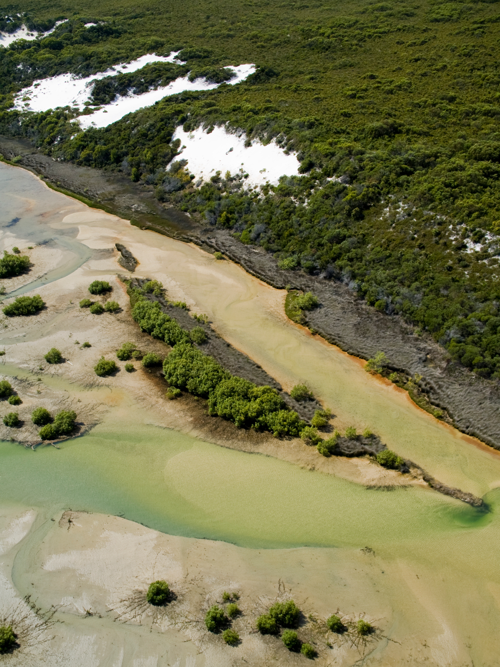At the northern end of the South East coastline there are small rivers and creeks, as well as estuaries between Baffle Creek and Hervey Bay. The larger of these, the Kolan, Burnett, Elliott and Burrum River estuaries support several hundred shorebirds, as well as other waterbirds and seabirds. Even the smallest estuaries host diverse populations. These waterways generally open onto a sandy beachfront and usually include mangroves and tidal flats. Upstream from the small river and creek mouths, the substrate becomes muddier and a range of shorebird species may be present. Terek sandpiper often occur well upstream on muddy banks, whereas fair to medium numbers of sand plovers and other species typically occur downstream. Farther south, especially south of the Burrum River, shorebirds feed on tidal flats. Expansive tidal flats adjoin the mainland areas throughout the Great Sandy Strait and on the west coast of K'gari (Fraser Island) providing significant habitat for shorebirds in Queensland. Estimated shorebird numbers between 35,000 in 1993 and 25,000 in 2013 have been recorded. Approximately a third of the Great Sandy Strait is intertidal mudflat or sandflat, the remainder includes mangroves, seagrass, saltmarsh, sandy spits and forested islands. There is a high diversity of shorebirds, including sanderling and beach stone-curlew that use the eastern beach front on K'gari (Fraser Island). To the south of the Great Sandy Strait and K'gari (Fraser Island) there are many kilometres of open beach front in between the estuaries of the Noosa and Maroochy Rivers, as well as Currimundi Creek where there are modest numbers of shorebirds. A little farther south begins the maze of estuaries and rich tidal flats that are sheltered by the large, inshore sand islands of Bribie, Mulgumpin (Moreton), Minjerribah (North Stradbroke) and Minjerribah (South Stradbroke) Islands. These islands not only provide roosting and nesting habitat for many species such as little tern, beach stone curlew, pied oyster catcher and red-capped plover, they form the extensive sheltered estuaries of the Pumicestone Passage and Moreton Bay. Several creeks and rivers drain into this extensive waterway where there are high numbers of shorebirds.Being so close to a major capital city, the area has received considerable attention from shorebird enthusiasts over the years, particularly since 1992 when the Queensland Wader Study Group began regular shorebird monitoring. Earlier data has been collected by the Australian Waderbird Study Group, but at far fewer sites. Artificial high tide roost sites have been built to offset the loss of habitat as a result of coastal development in some locations. The feeding substrate for shorebirds differs throughout Moreton Bay with a major distinction between predominantly muddy sediment on the western side and sandier sediment on east shores, which is reflected in the relative numbers of different species of shorebirds. Variation also occurs along the western foreshore due to local impacts and changes in the substrate. Major feeding areas occur in Tripcony Bight and between Donnybrook and Toorbul in Pumicestone Passage, in Deception Bay, Hays Inlet, and the mainland foreshore between Nudgee all the way south to Redland Bay. The expansive flats at the southern end of Mulgumpin (Moreton Island) and the western side of Minjerribah (North Stradbroke Island) to Canaipa (Russell Island) have the highest numbers of shorebirds anywhere in the Bay. Farther south in the Bay, where the tidal flats are narrower and the recreational use is high within the network of channels, shorebirds appear to be less numerous. There are several shorebird sites within the Broadwater and channels of the Gold Coast, with species such as eastern curlew, whimbrel and crested tern regularly found in the vicinity of Jumpinpin and Curlew Island. The significance of Moreton Bay and the Great Sandy Strait for shorebirds is recognised by inclusion in the Flyway Site Network and as Ramsar sites. Additional information