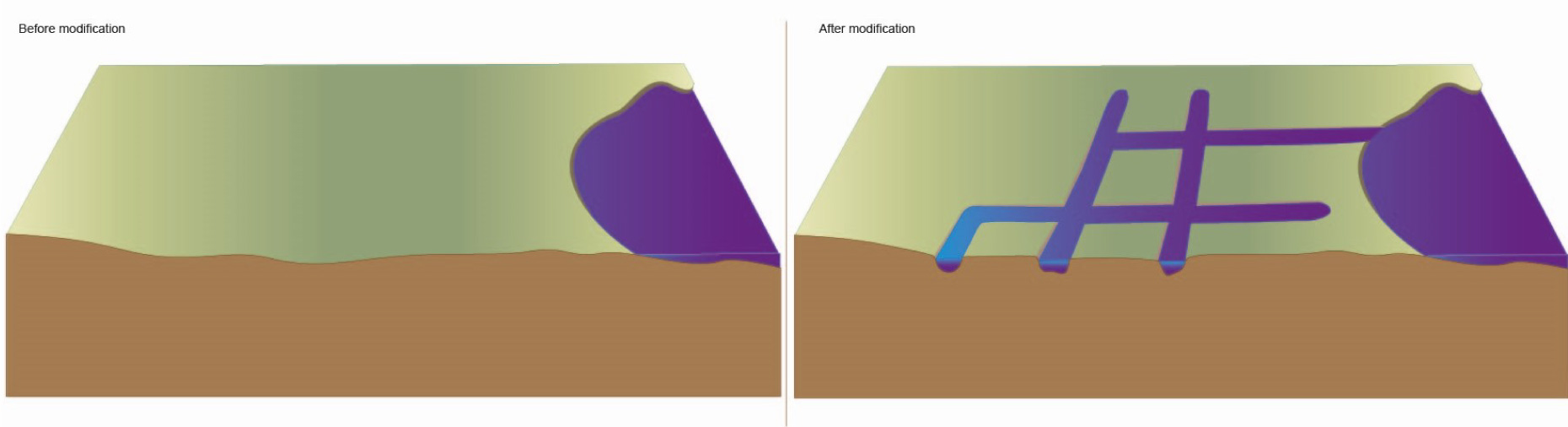 Constructed channel creating an artificial intertidal wetlandConstruction of one or more artificial channels where there was no previous wetland that openly connect to estuaries or intertidal wetlands. Channel construction may include evidence of excavation and/or bunding. Applicable Wetland Habitat Hydrological Modification: