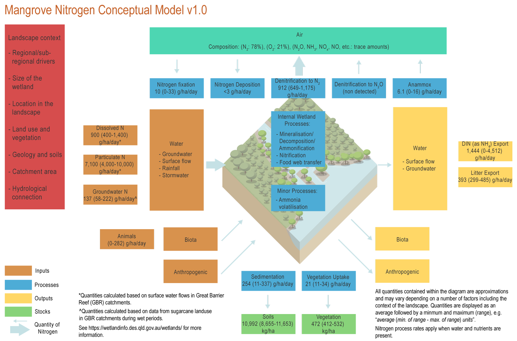 ^ Adame, MF, Vilas, MP, Franklin, H, Garzon-Garcia, A, Hamilton, D, Ronan, M & Griffiths, M (2021), 'A conceptual model of nitrogen dynamics for the Great Barrier Reef catchments', Marine Pollution Bulletin. [online], vol. 173PA. Available at: https://www.sciencedirect.com/science/article/pii/S0025326X21009437.