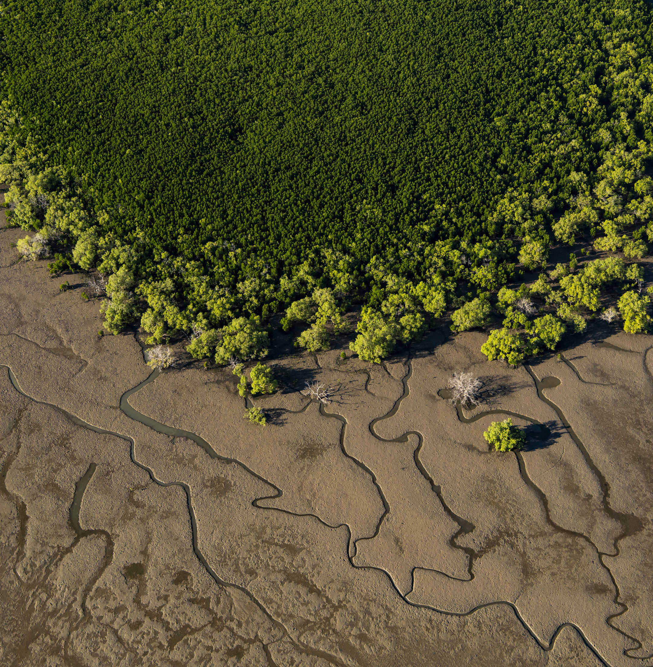 Mangroves are vegetated, intertidal wetlands located at the interface between the land and sea, usually at the mean high-water level. Mangroves are periodically inundated by tides, which are regularly or intermittently diluted with freshwater run-off from the land. They form dense forests with scarce understory vegetation, although, in mangroves with high inputs of freshwater, shrubs or palms can be found. The broadest variety of mangrove species are usually found in tropical, river-dominated forests. Mangroves exist in a constantly changing environment, directly affected by marine and freshwater and are sporadically exposed to floods of freshwater during wet periods.