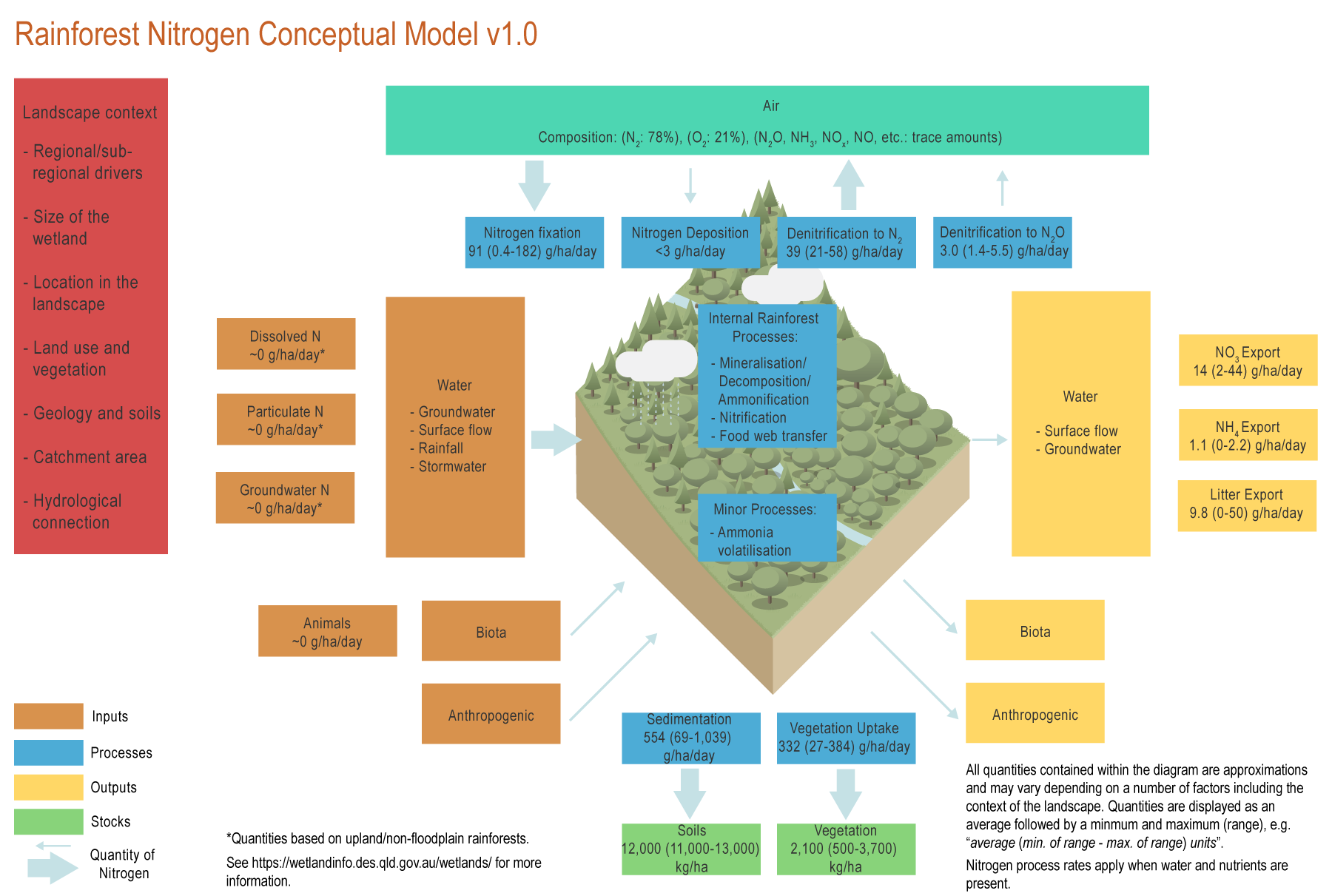 Department of the Environment, Tourism, Science and Innovation, Queensland (2021) Rainforest, WetlandInfo website, accessed 15 December 2025. Available at: https://wetlandinfo.detsi.qld.gov.au/wetlands/ecology/processes-systems/nitrogen-concept-model/rainforest/
