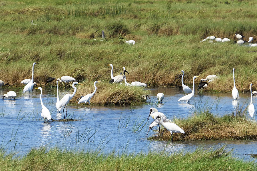 ShorebirdsForeshore management is important for the conservation of shorebirds. Shorebirds feed on macrobenthic invertebrate fauna including polychaete crustaceans, molluscs or insects on intertidal coastal mudflats. On saline or freshwater inland mudflats, diptera (fly) larvae are an important food. Nutrient inputs, sedimentation rates, tidal regimes, periodic flooding and natural habitat mosaics may all contribute to a resilient, productive mudflat that benefits shorebirds. The quality of the mudflat is dependent on maintenance of the broader wetland system and surrounding catchment. Migratory shorebirds may appear to have many choices of where to feed. However, high feeding densities of shorebirds reliably occur in some places and not others but there are knowledge limitations regarding what determines these habitat choices. Some individual shorebirds habitually return to the same feeding site year after year. For some species feeding habitat in central parts of the Flyway is particularly vulnerable[2]. In general the importance of feeding flats is enhanced if the feeding area is larger. The relative density of shorebirds tends to be higher in larger areas e.g. larger than 30 hectares, although there are exceptions, particularly where habitat loss has occurred. Fragmentation of feeding flats should be avoided as it divides larger feeding areas into smaller ones thereby reducing bird numbers. General management principles include: