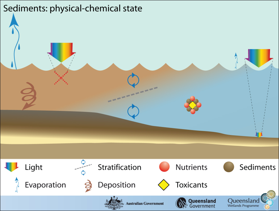 Last updated: 22 March 2013 This page should be cited as: Department of the Environment, Tourism, Science and Innovation, Queensland (2013) Aquatic sediments – State, WetlandInfo website, accessed 15 December 2025. Available at: https://wetlandinfo.detsi.qld.gov.au/wetlands/management/pressures/lacustrine-palustrine-threats/aquatic-sediments/state.html |