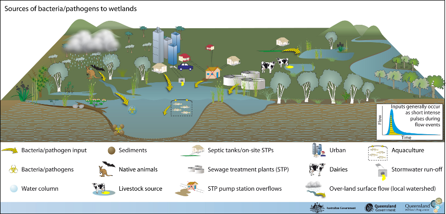 Department of the Environment, Tourism, Science and Innovation, Queensland (2013) Bacteria/pathogens – Pressures, WetlandInfo website, accessed 15 December 2025. Available at: https://wetlandinfo.detsi.qld.gov.au/wetlands/management/pressures/lacustrine-palustrine-threats/bacteria-pathogens/pressure.html