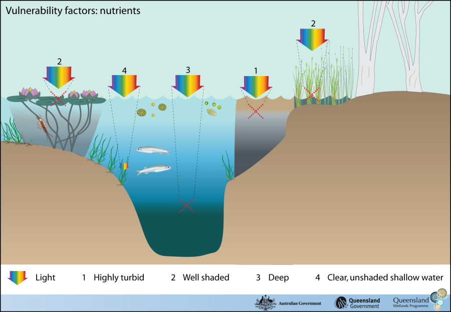 Department of the Environment, Tourism, Science and Innovation, Queensland (2013) Nutrients – Vulnerability, WetlandInfo website, accessed 15 December 2025. Available at: https://wetlandinfo.detsi.qld.gov.au/wetlands/management/pressures/lacustrine-palustrine-threats/nutrients/vulnerability.html