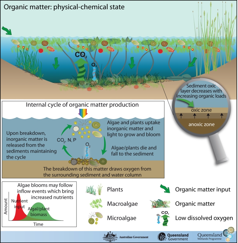 Last updated: 22 March 2013 This page should be cited as: Department of the Environment, Tourism, Science and Innovation, Queensland (2013) Organic matter – State, WetlandInfo website, accessed 15 December 2025. Available at: https://wetlandinfo.detsi.qld.gov.au/wetlands/management/pressures/lacustrine-palustrine-threats/organic-matter/state.html |