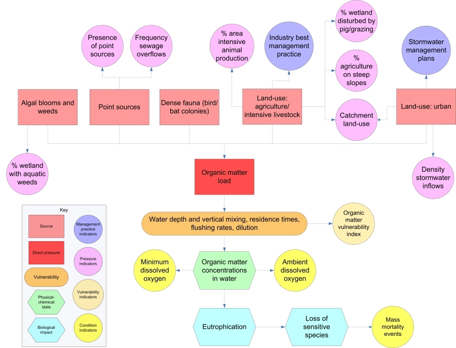 flushing rates and dilution—wetlands with low flushing rates or small dilution are more vulnerable as organic matter (and its associated impacts) is concentrated in a small area for longer periods