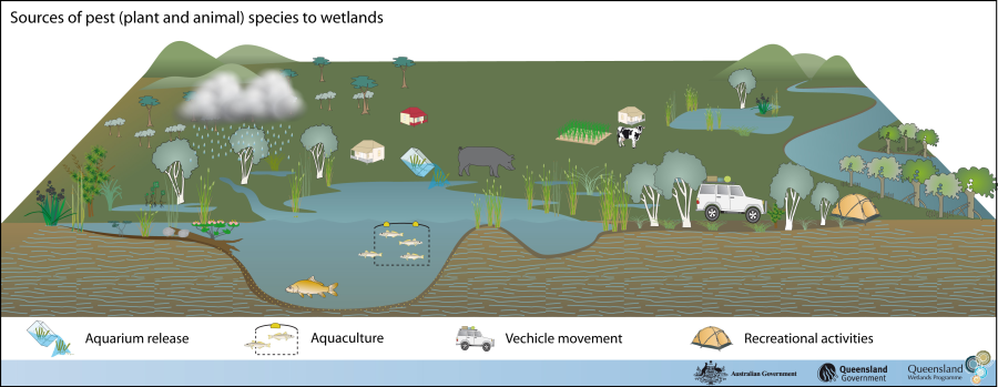 Last updated: 22 March 2013 This page should be cited as: Department of the Environment, Tourism, Science and Innovation, Queensland (2013) Pest (animal, plant) species – Pressures, WetlandInfo website, accessed 15 December 2025. Available at: https://wetlandinfo.detsi.qld.gov.au/wetlands/management/pressures/lacustrine-palustrine-threats/pest-species/pressure.html |