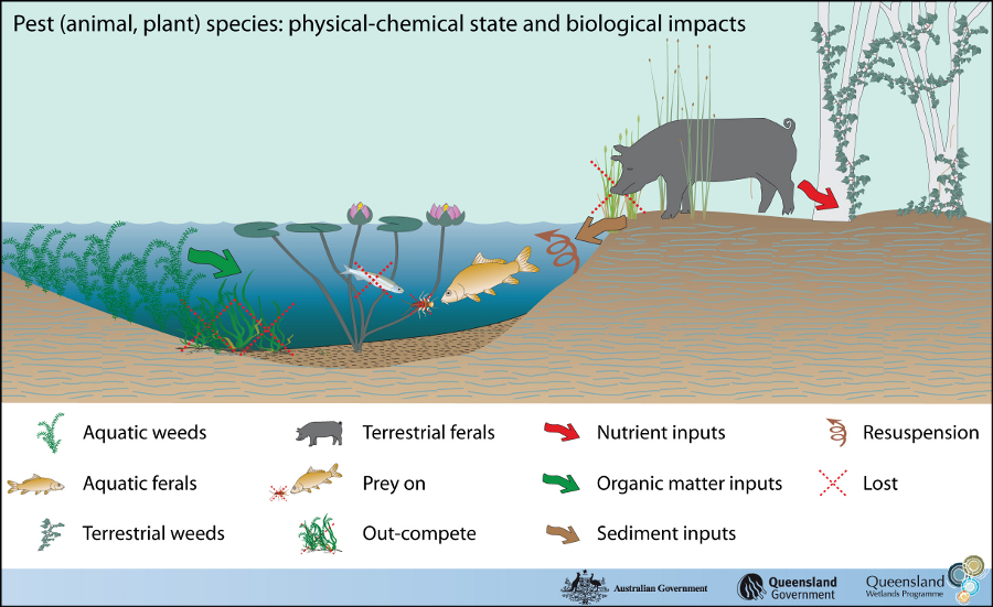 Last updated: 22 March 2013 This page should be cited as: Department of the Environment, Tourism, Science and Innovation, Queensland (2013) Pest (animal, plant) species – State, WetlandInfo website, accessed 15 December 2025. Available at: https://wetlandinfo.detsi.qld.gov.au/wetlands/management/pressures/lacustrine-palustrine-threats/pest-species/state.html |