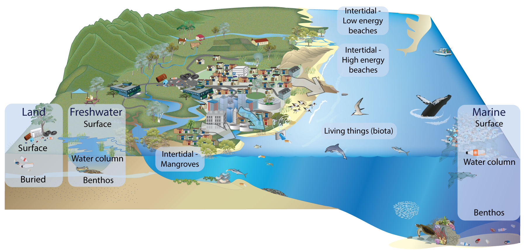 Sinks (where waste ends up)Sinks are the places where waste come to rest in the environment. Studying sinks helps to understand the damage caused by waste pollution and identify effective actions. Four major categories of sinks are: