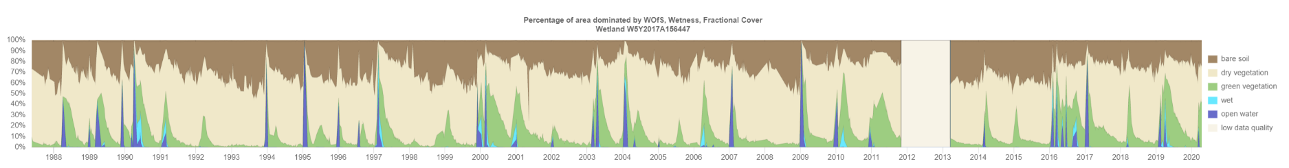 The Queensland Government has worked with the Australian Government (Geoscience Australia) to develop the DEA Wetlands Insight Tool (QLD). The Wetlands Insight data display on WetlandMaps (Beta) summarises how the amount of open water, wet, green vegetation, dry vegetation and bare soil varies over time within each wetland. This information provides wetland managers and scientists with a historical baseline of wetland dynamics based on Landsat data starting from 1987. Investigating Coombabah Lake and Creek, Gold CoastA project by the Department of Environment and Science with input from the City of the Gold Coast and other key partners is documenting the state of the wetland system. Information gained from tidal, sediment, vegetation and other studies will provide insight into how the system may change in response to increasing urbanisation and a changing climate. The information from this study will contribute to management solutions and climate adaptation measures to conserve the wetland system. UpdatesUpdated layers on WetlandMaps and WetlandSummary