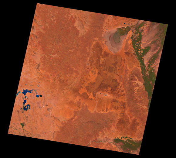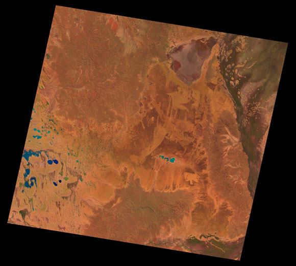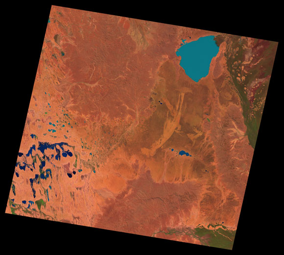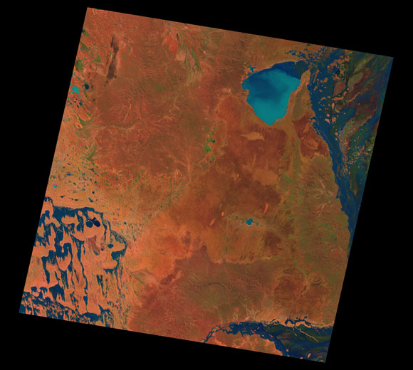 Arrabury Landsat SceneImages are colour-mapped to enhance the contrast of water bodies (Shortwave→Red, Near-infrared→Green, Green→Blue) Copyright Commonwealth of Australia - Geoscience Australia. Imagery post-processed by DETSI. This page should be cited as: Department of the Environment, Tourism, Science and Innovation, Queensland (2013) Arrabury Landsat Scene, WetlandInfo website, accessed 15 December 2025. Available at: https://wetlandinfo.detsi.qld.gov.au/wetlands/resources/tools/hydro-climate/scene/arra/ |