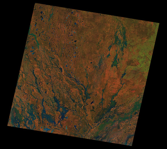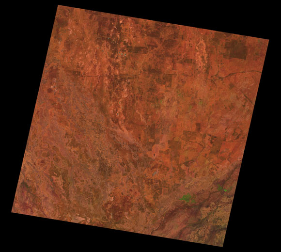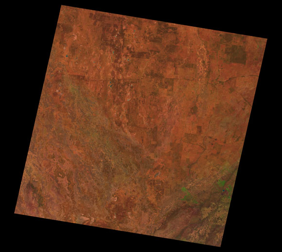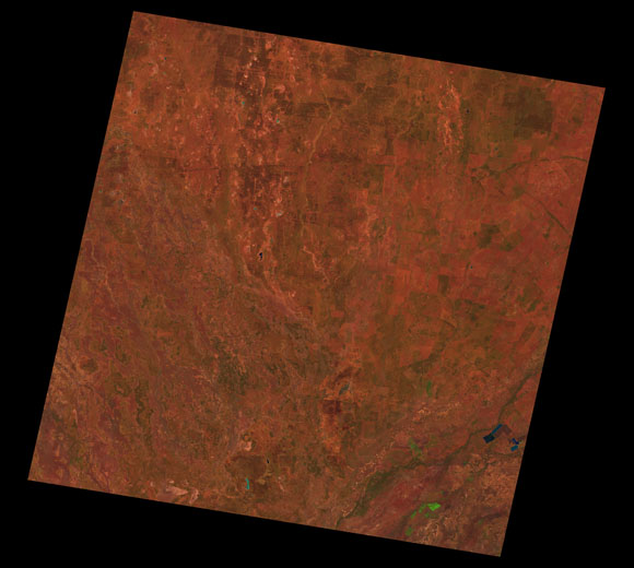 Bollon Landsat SceneWRS path/row: 93/79-80 Images are colour-mapped to enhance the contrast of water bodies (Shortwave→Red, Near-infrared→Green, Green→Blue) Copyright Commonwealth of Australia - Geoscience Australia. Imagery post-processed by DETSI. This page should be cited as: Department of the Environment, Tourism, Science and Innovation, Queensland (2013) Bollon Landsat Scene, WetlandInfo website, accessed 15 December 2025. Available at: https://wetlandinfo.detsi.qld.gov.au/wetlands/resources/tools/hydro-climate/scene/boll/ |