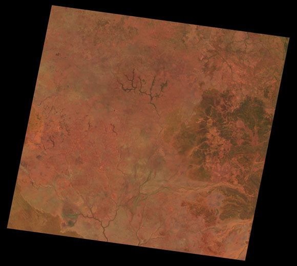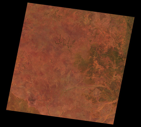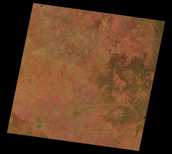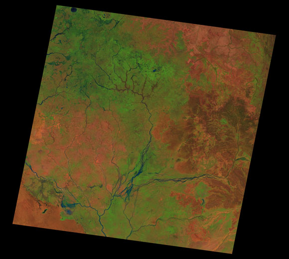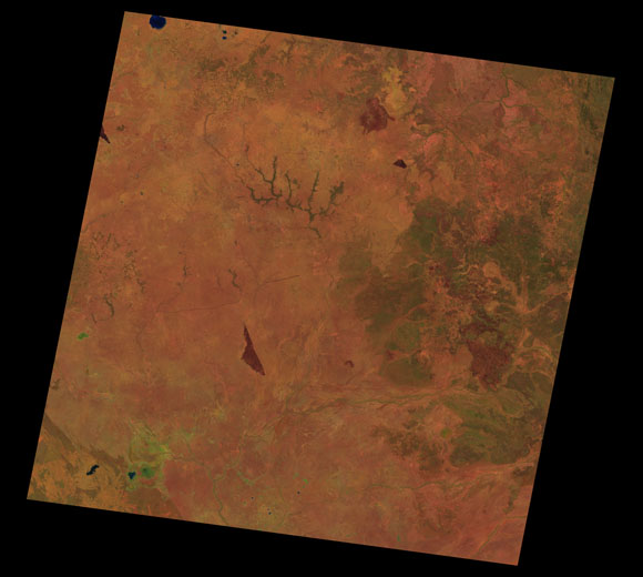 Camooweal Landsat SceneWRS path/row: 100/73-74 Images are colour-mapped to enhance the contrast of water bodies (Shortwave→Red, Near-infrared→Green, Green→Blue) Copyright Commonwealth of Australia - Geoscience Australia. Imagery post-processed by DETSI. This page should be cited as: Department of the Environment, Tourism, Science and Innovation, Queensland (2013) Camooweal Landsat Scene, WetlandInfo website, accessed 15 December 2025. Available at: https://wetlandinfo.detsi.qld.gov.au/wetlands/resources/tools/hydro-climate/scene/camo/ |
