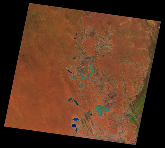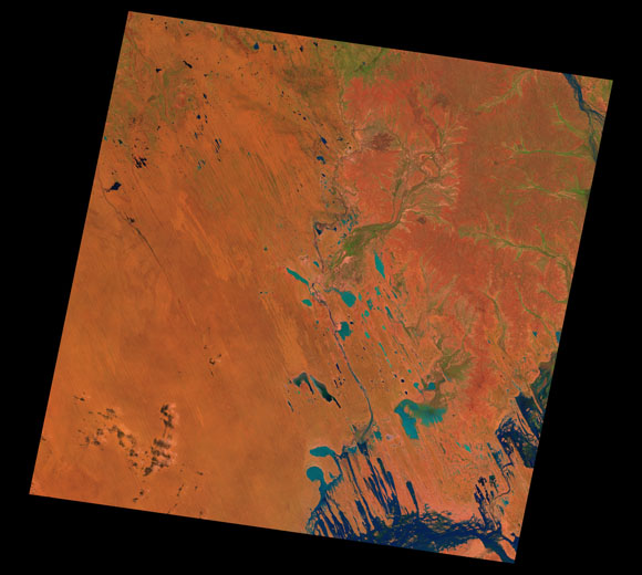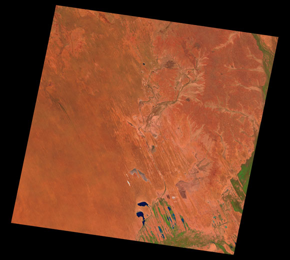 Carlo Landsat SceneWRS path/row: 99/76-77 Images are colour-mapped to enhance the contrast of water bodies (Shortwave→Red, Near-infrared→Green, Green→Blue) Copyright Commonwealth of Australia - Geoscience Australia. Imagery post-processed by DETSI. This page should be cited as: Department of the Environment, Tourism, Science and Innovation, Queensland (2013) Carlo Landsat Scene, WetlandInfo website, accessed 15 December 2025. Available at: https://wetlandinfo.detsi.qld.gov.au/wetlands/resources/tools/hydro-climate/scene/carl/ |