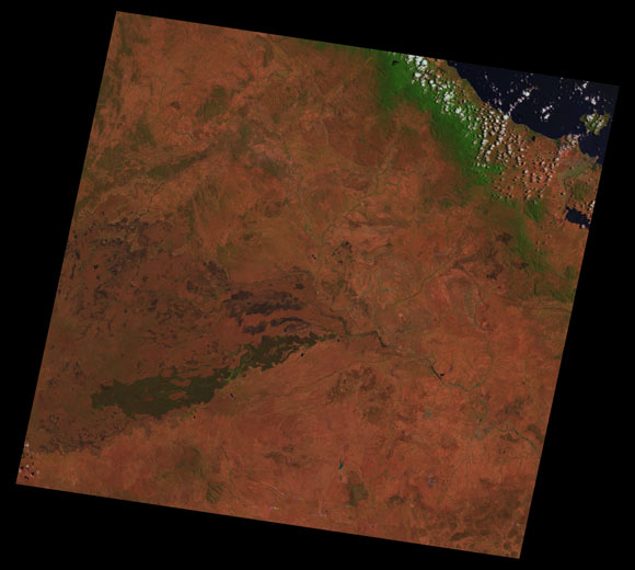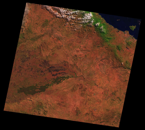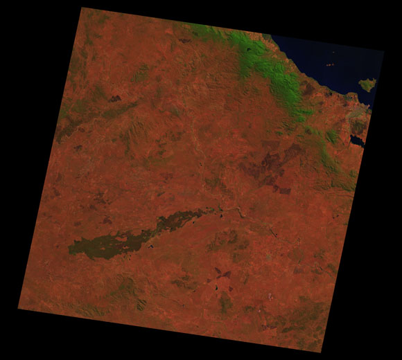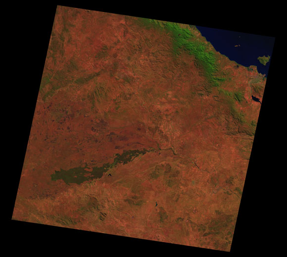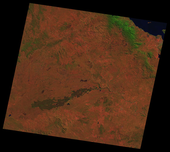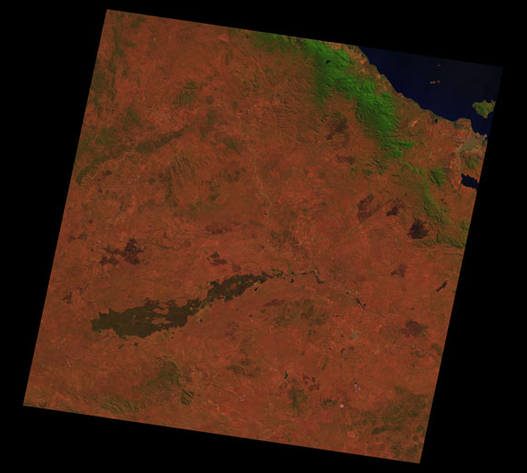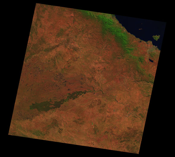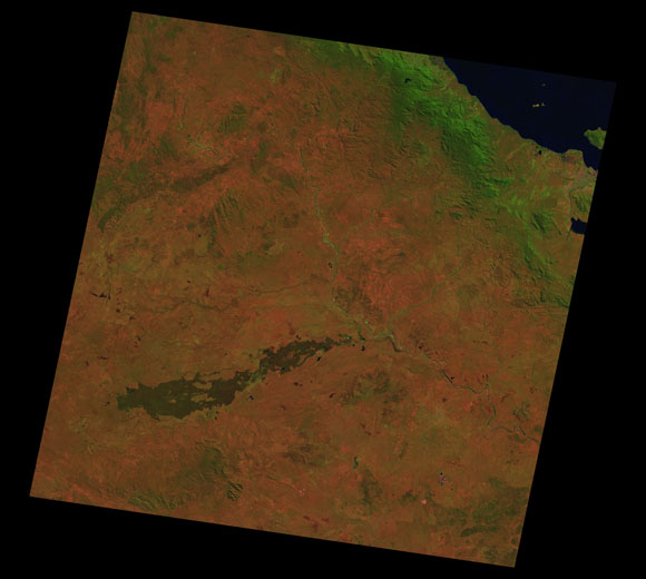 Charters Towers Landsat SceneImages are colour-mapped to enhance the contrast of water bodies (Shortwave→Red, Near-infrared→Green, Green→Blue) Copyright Commonwealth of Australia - Geoscience Australia. Imagery post-processed by DETSI. This page should be cited as: Department of the Environment, Tourism, Science and Innovation, Queensland (2013) Charters Towers Landsat Scene, WetlandInfo website, accessed 15 December 2025. Available at: https://wetlandinfo.detsi.qld.gov.au/wetlands/resources/tools/hydro-climate/scene/chat/ |
