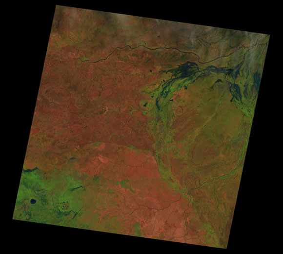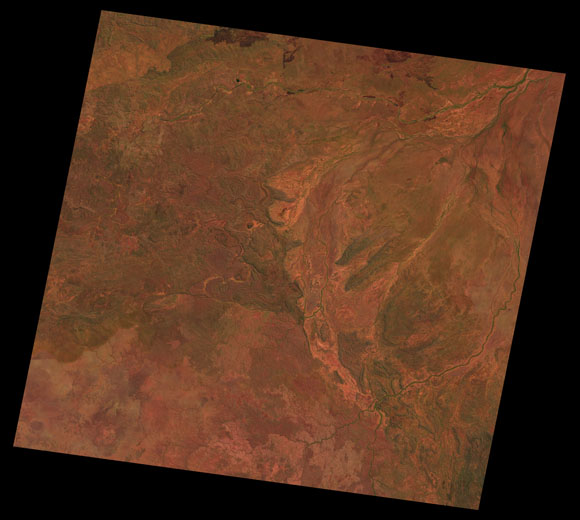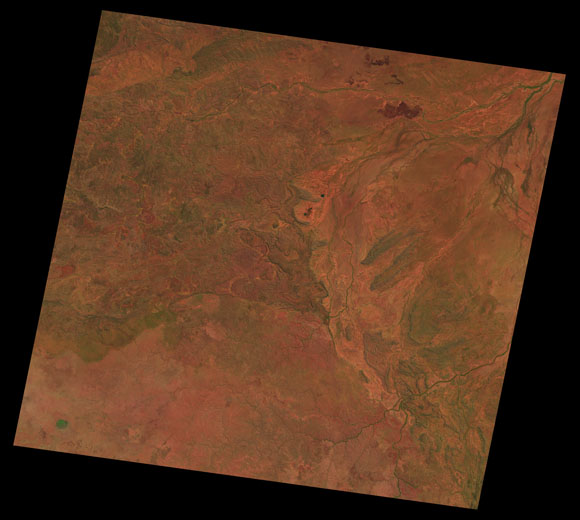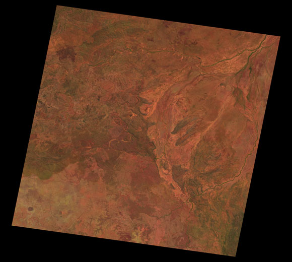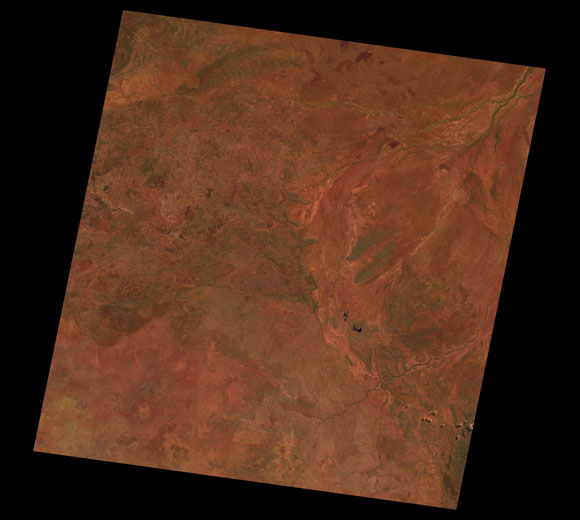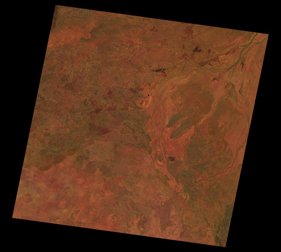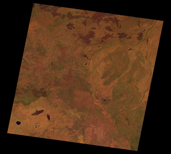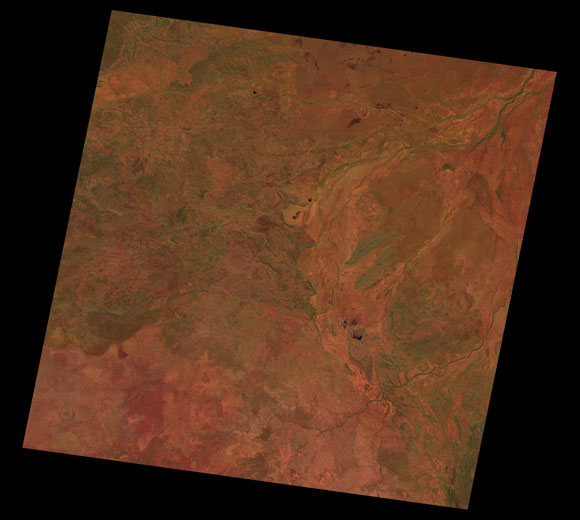Doomadgee Landsat SceneWRS path/row: 100/72-73 Images are colour-mapped to enhance the contrast of water bodies (Shortwave→Red, Near-infrared→Green, Green→Blue) Copyright Commonwealth of Australia - Geoscience Australia. Imagery post-processed by DETSI. This page should be cited as: Department of the Environment, Tourism, Science and Innovation, Queensland (2013) Doomadgee Landsat Scene, WetlandInfo website, accessed 15 December 2025. Available at: https://wetlandinfo.detsi.qld.gov.au/wetlands/resources/tools/hydro-climate/scene/doom/ |