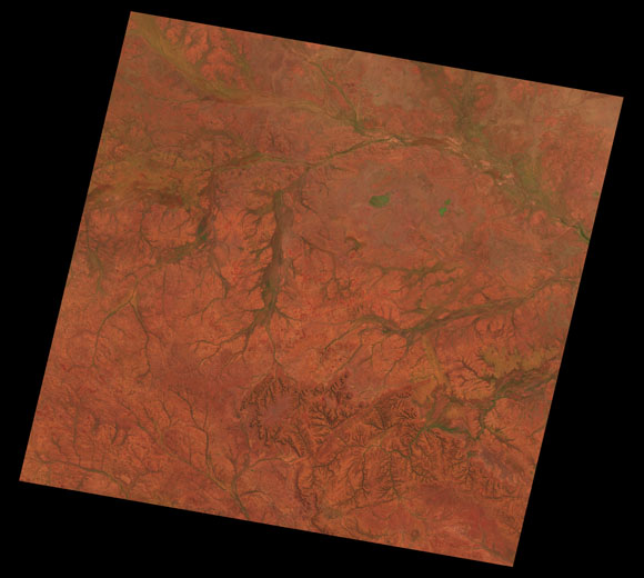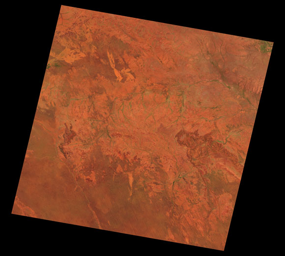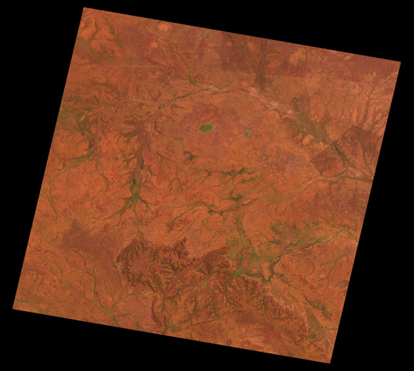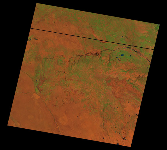 Dynamite Creek Landsat SceneImages are colour-mapped to enhance the contrast of water bodies (Shortwave→Red, Near-infrared→Green, Green→Blue) Copyright Commonwealth of Australia - Geoscience Australia. Imagery post-processed by DETSI. This page should be cited as: Department of the Environment, Tourism, Science and Innovation, Queensland (2013) Dynamite Creek Landsat Scene, WetlandInfo website, accessed 15 December 2025. Available at: https://wetlandinfo.detsi.qld.gov.au/wetlands/resources/tools/hydro-climate/scene/dyna/ |