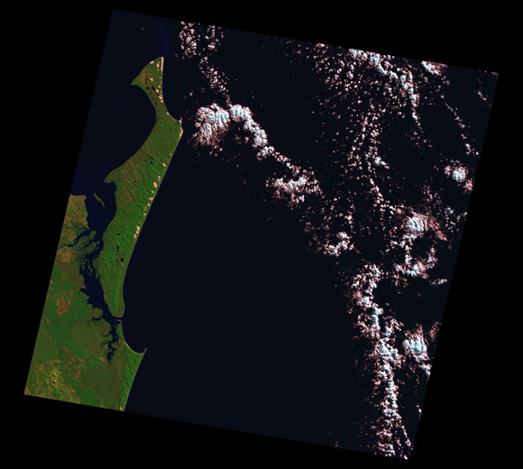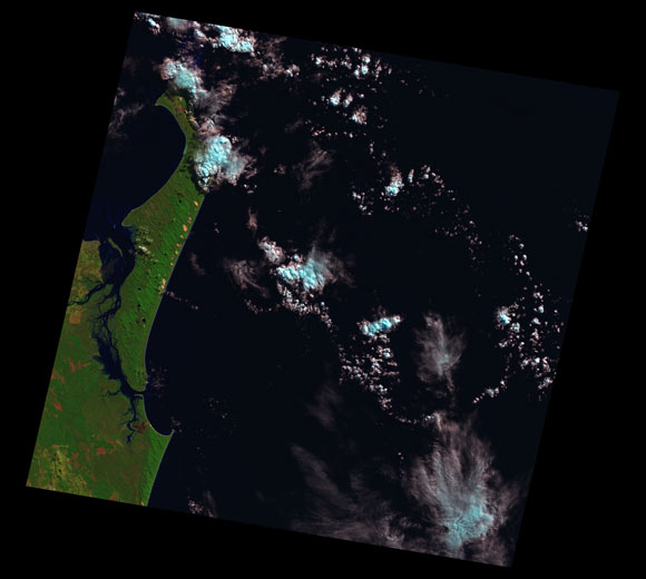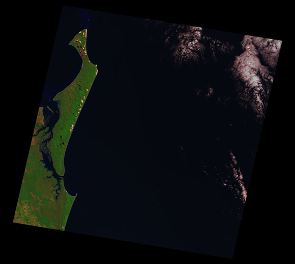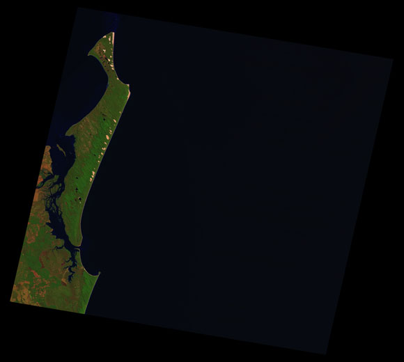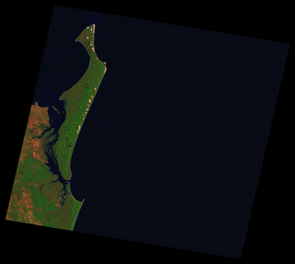 Fraser Island Landsat SceneWRS path/row: 89/77-78 Images are colour-mapped to enhance the contrast of water bodies (Shortwave→Red, Near-infrared→Green, Green→Blue) Copyright Commonwealth of Australia - Geoscience Australia. Imagery post-processed by DETSI. This page should be cited as: Department of the Environment, Tourism, Science and Innovation, Queensland (2013) Fraser Island Landsat Scene, WetlandInfo website, accessed 15 December 2025. Available at: https://wetlandinfo.detsi.qld.gov.au/wetlands/resources/tools/hydro-climate/scene/fras/ |