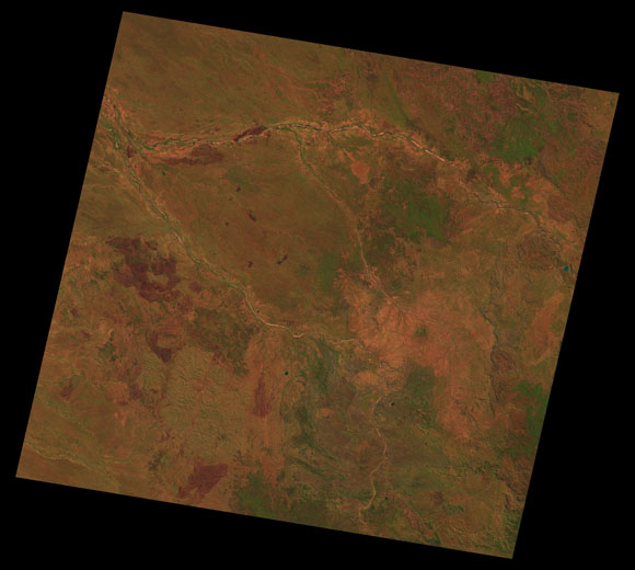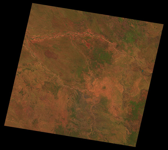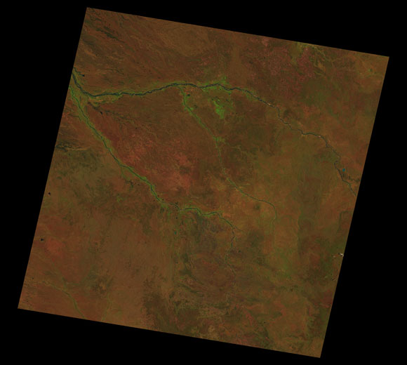 Georgetown Landsat SceneImages are colour-mapped to enhance the contrast of water bodies (Shortwave→Red, Near-infrared→Green, Green→Blue) Copyright Commonwealth of Australia - Geoscience Australia. Imagery post-processed by DETSI. This page should be cited as: Department of the Environment, Tourism, Science and Innovation, Queensland (2013) Georgetown Landsat Scene, WetlandInfo website, accessed 15 December 2025. Available at: https://wetlandinfo.detsi.qld.gov.au/wetlands/resources/tools/hydro-climate/scene/geor/ |