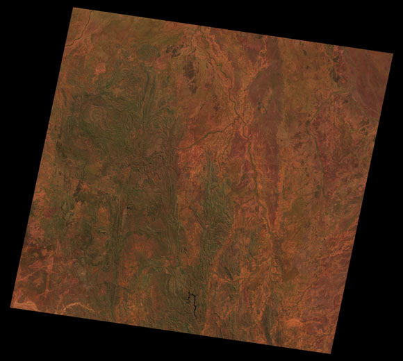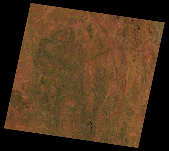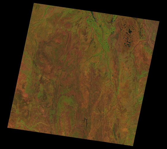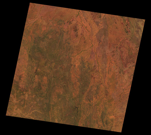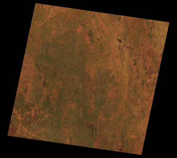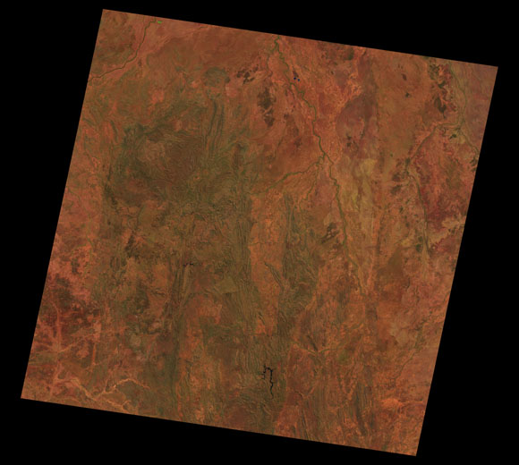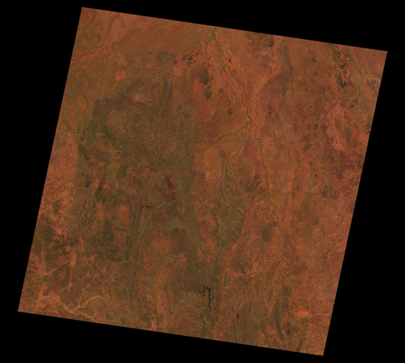 Gunpowder Landsat SceneImages are colour-mapped to enhance the contrast of water bodies (Shortwave→Red, Near-infrared→Green, Green→Blue) Copyright Commonwealth of Australia - Geoscience Australia. Imagery post-processed by DETSI. This page should be cited as: Department of the Environment, Tourism, Science and Innovation, Queensland (2013) Gunpowder Landsat Scene, WetlandInfo website, accessed 15 December 2025. Available at: https://wetlandinfo.detsi.qld.gov.au/wetlands/resources/tools/hydro-climate/scene/gunp/ |