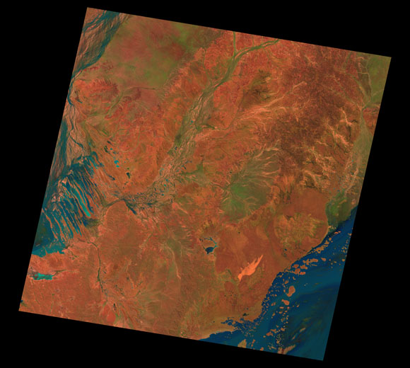 Haddon Corner Landsat SceneWRS path/row: 97/77-78 Images are colour-mapped to enhance the contrast of water bodies (Shortwave→Red, Near-infrared→Green, Green→Blue) Copyright Commonwealth of Australia - Geoscience Australia. Imagery post-processed by DETSI. This page should be cited as: Department of the Environment, Tourism, Science and Innovation, Queensland (2013) Haddon Corner Landsat Scene, WetlandInfo website, accessed 15 December 2025. Available at: https://wetlandinfo.detsi.qld.gov.au/wetlands/resources/tools/hydro-climate/scene/hadd/ |