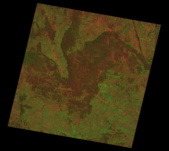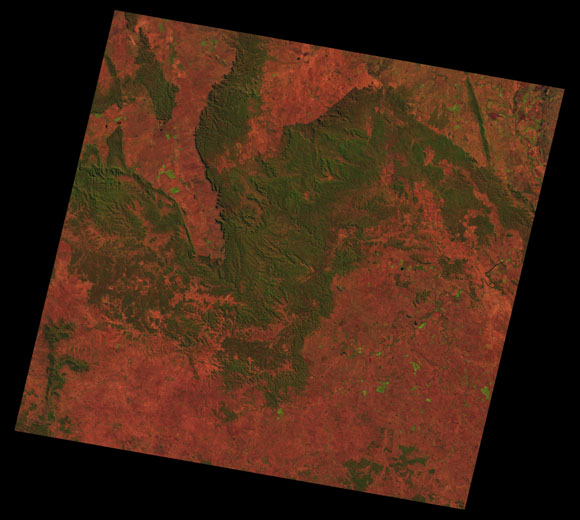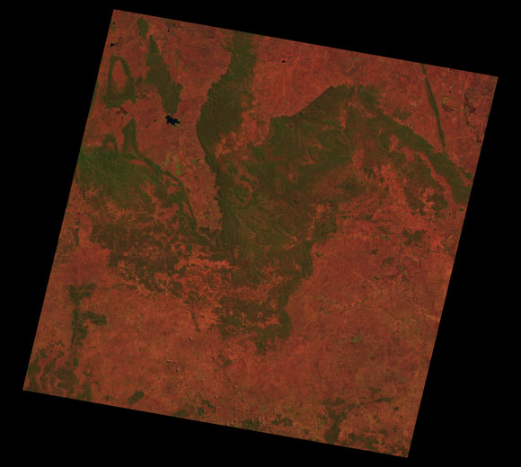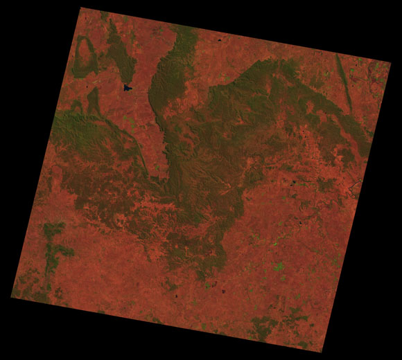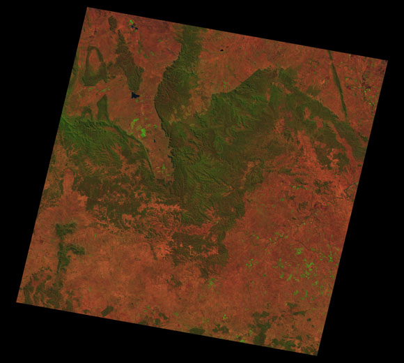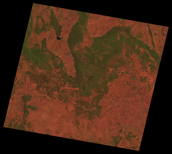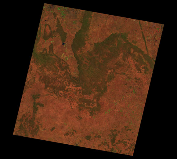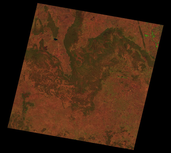 Injune Landsat SceneImages are colour-mapped to enhance the contrast of water bodies (Shortwave→Red, Near-infrared→Green, Green→Blue) Copyright Commonwealth of Australia - Geoscience Australia. Imagery post-processed by DETSI. This page should be cited as: Department of the Environment, Tourism, Science and Innovation, Queensland (2013) Injune Landsat Scene, WetlandInfo website, accessed 15 December 2025. Available at: https://wetlandinfo.detsi.qld.gov.au/wetlands/resources/tools/hydro-climate/scene/inju/ |