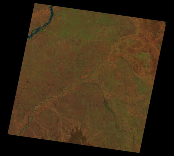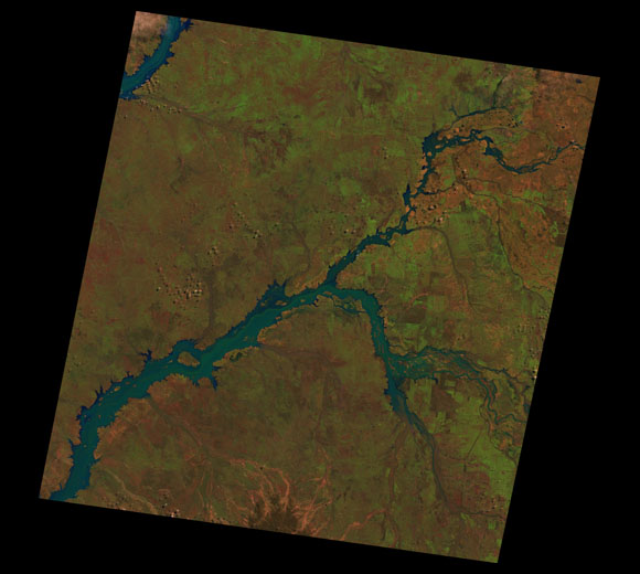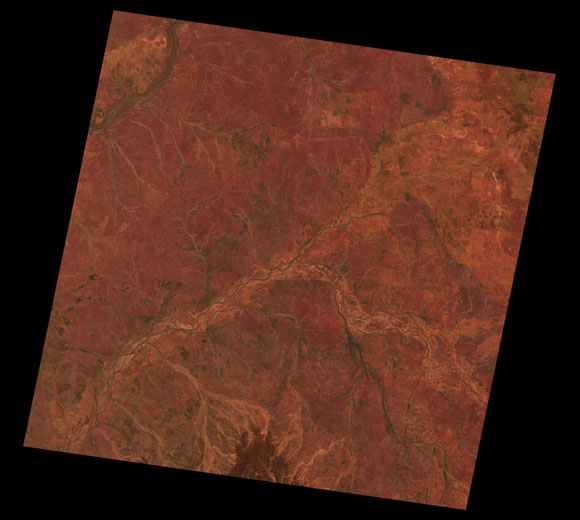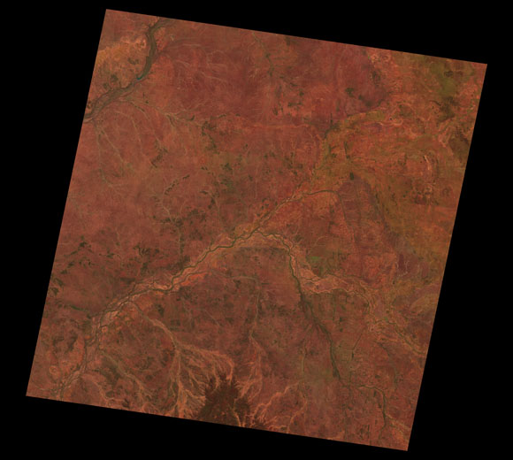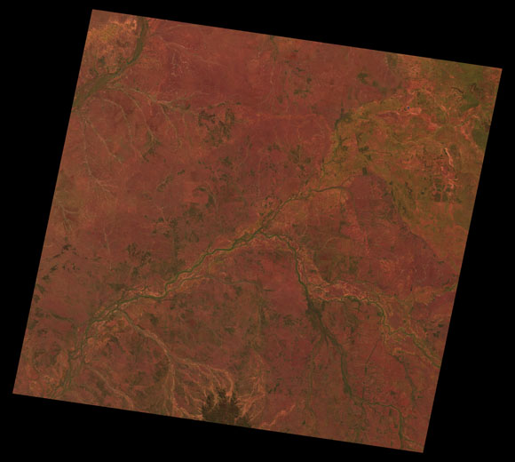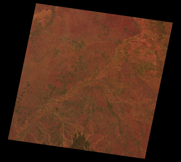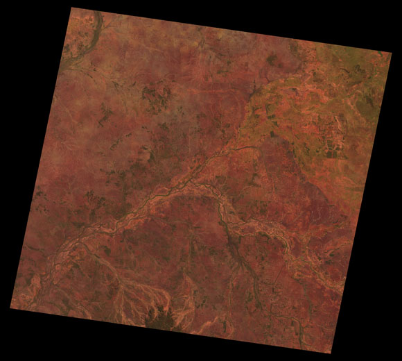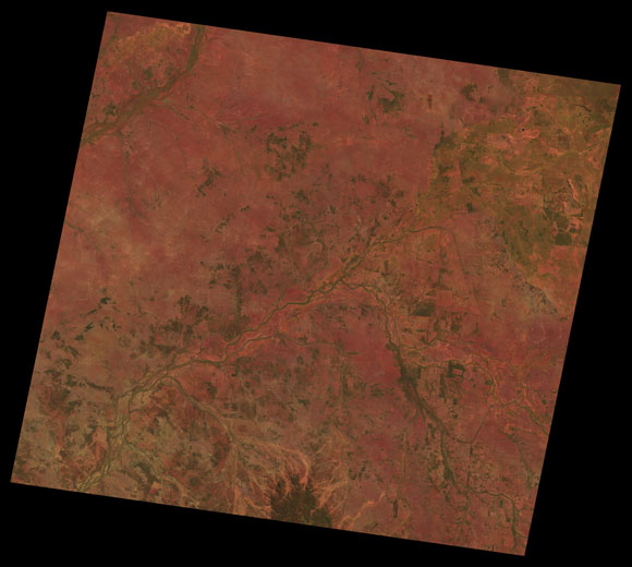 Isisford Landsat SceneWRS path/row: 95/76-77 Images are colour-mapped to enhance the contrast of water bodies (Shortwave→Red, Near-infrared→Green, Green→Blue) Copyright Commonwealth of Australia - Geoscience Australia. Imagery post-processed by DETSI. This page should be cited as: Department of the Environment, Tourism, Science and Innovation, Queensland (2013) Isisford Landsat Scene, WetlandInfo website, accessed 15 December 2025. Available at: https://wetlandinfo.detsi.qld.gov.au/wetlands/resources/tools/hydro-climate/scene/isis/ |