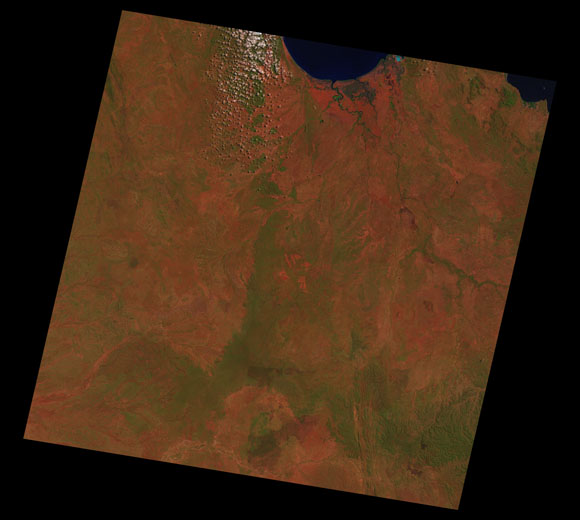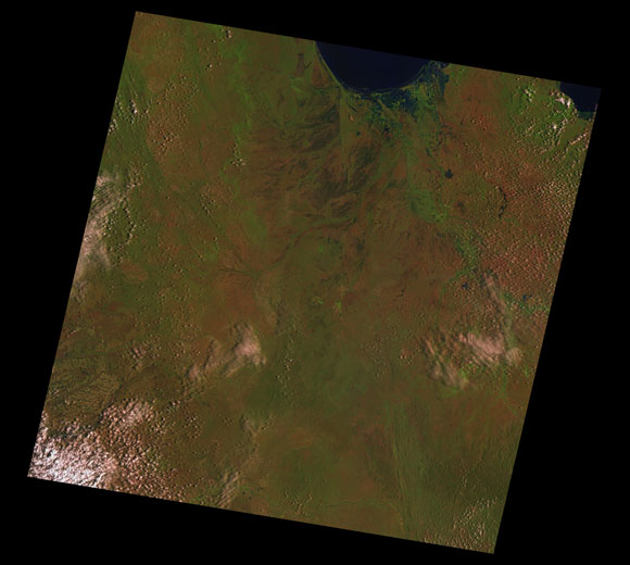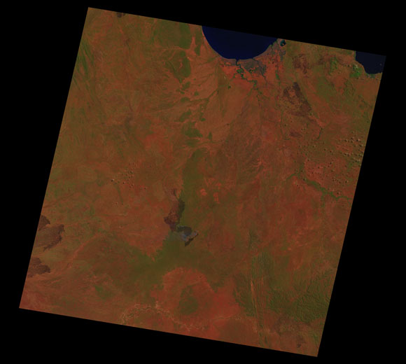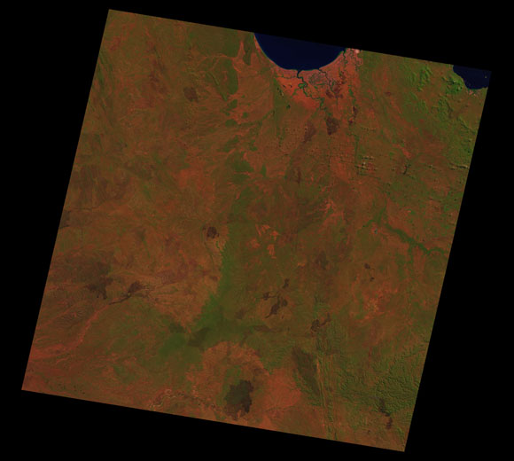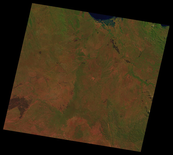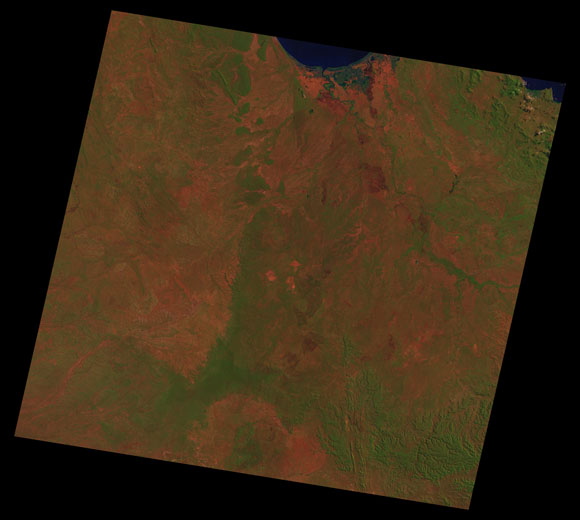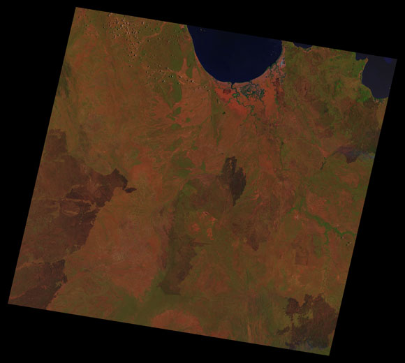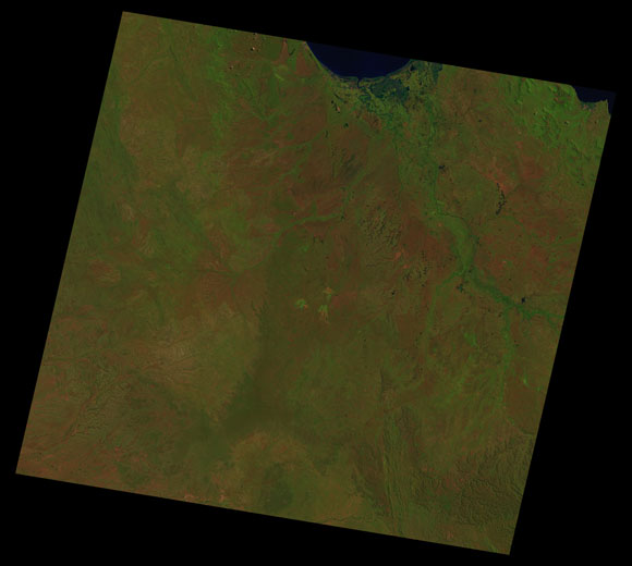 Kalinga Landsat SceneImages are colour-mapped to enhance the contrast of water bodies (Shortwave→Red, Near-infrared→Green, Green→Blue) Copyright Commonwealth of Australia - Geoscience Australia. Imagery post-processed by DETSI. This page should be cited as: Department of the Environment, Tourism, Science and Innovation, Queensland (2013) Kalinga Landsat Scene, WetlandInfo website, accessed 15 December 2025. Available at: https://wetlandinfo.detsi.qld.gov.au/wetlands/resources/tools/hydro-climate/scene/kali/ |